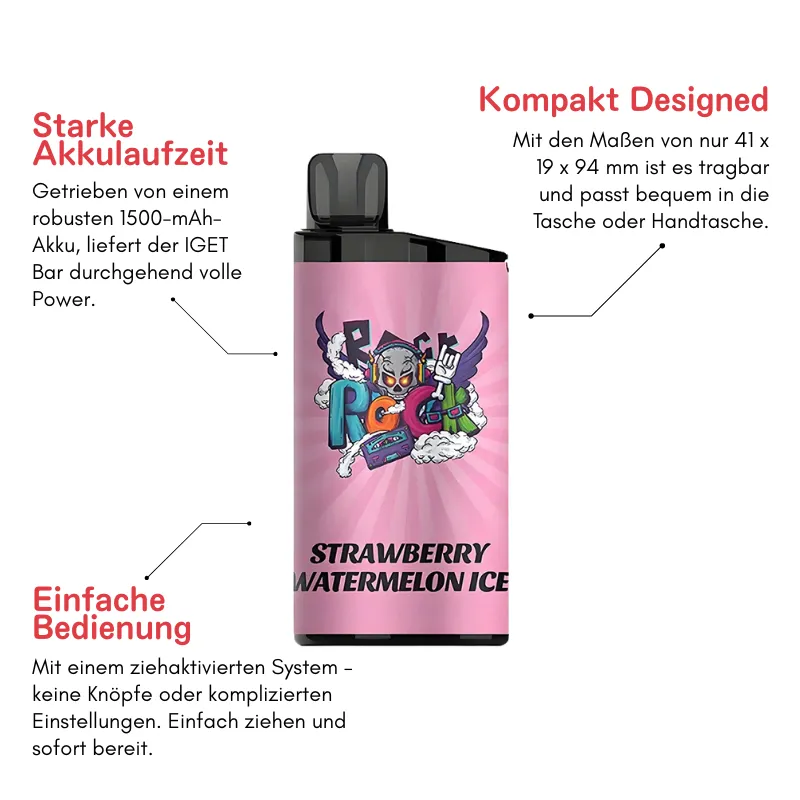 - Erleben Sie mit der IGET Bar einen intensiven Rachenreiz durch 50mg/ml Nikotin