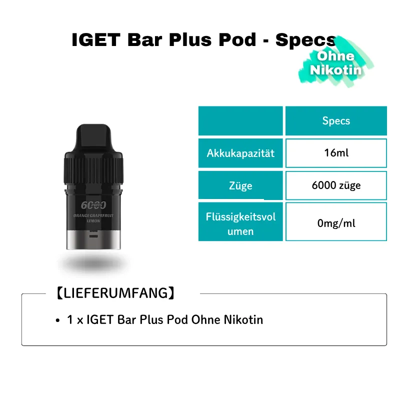 1 × Pods für IGET Bar Plus Kit nikotinfrei